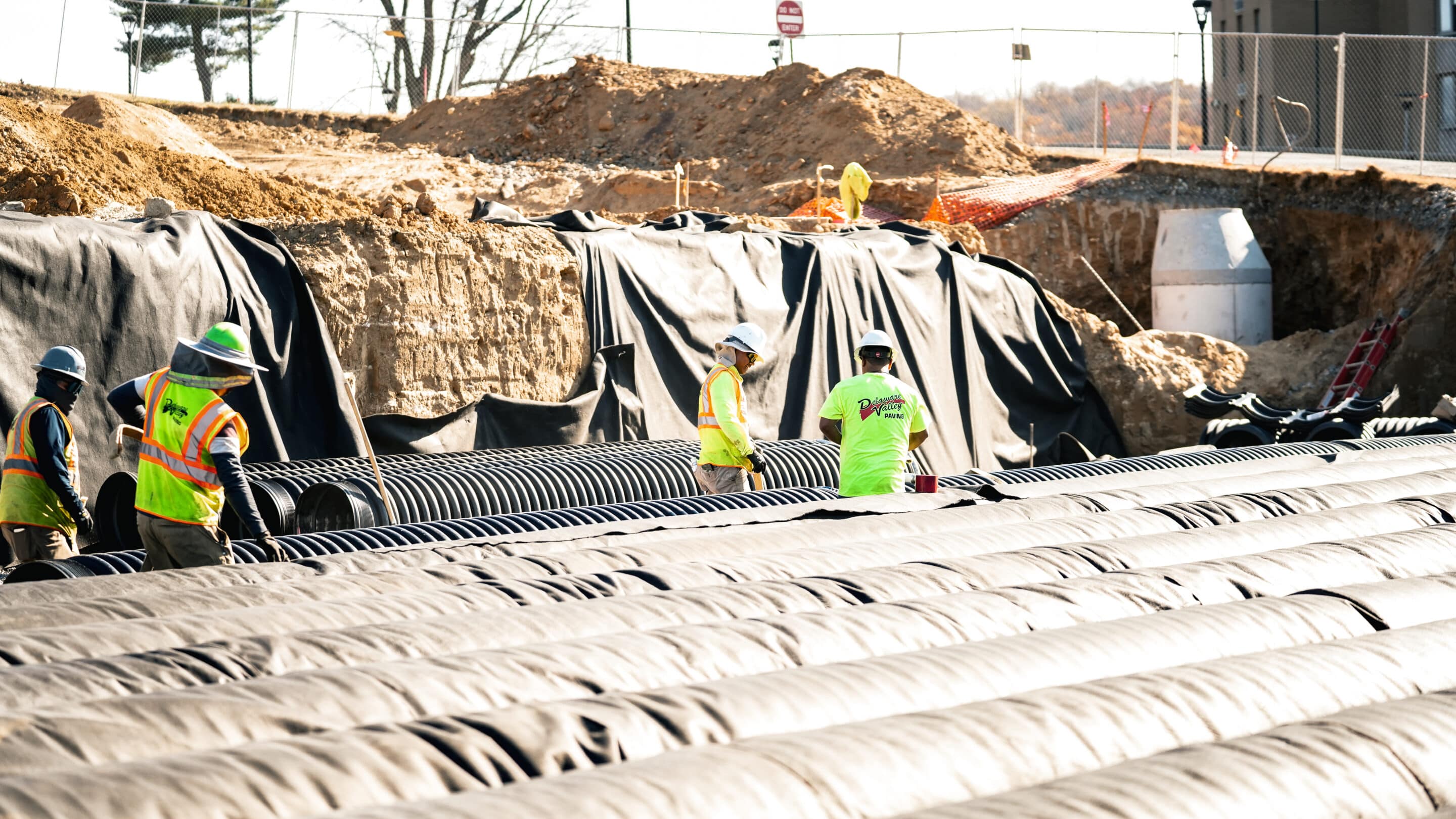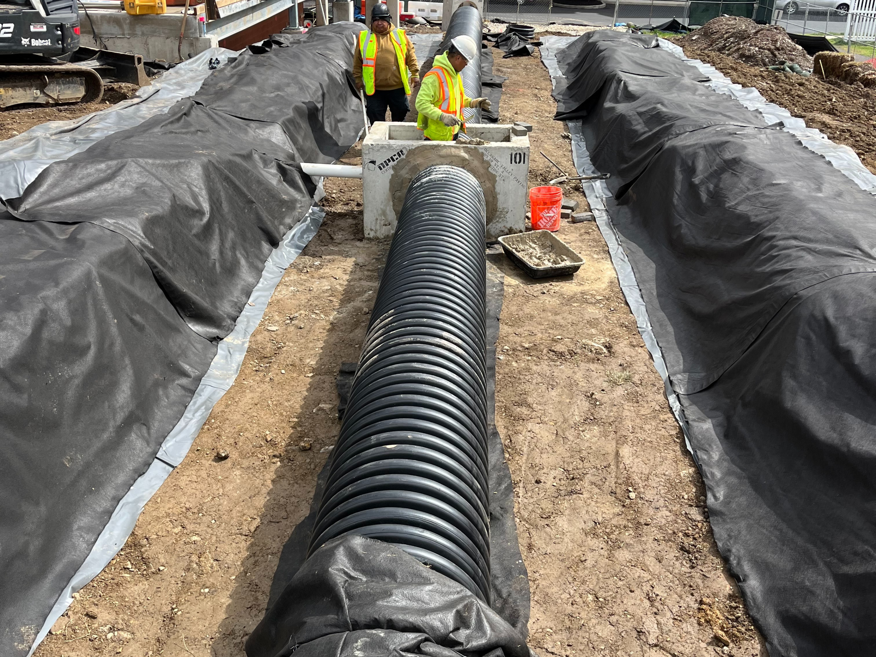 Delaware Valley Paving completed a full civil reconstruction at the Chesterbrook Amenities Building, including stormwater system upgrades and site improvements designed to enhance drainage, durability, and long-term performance.