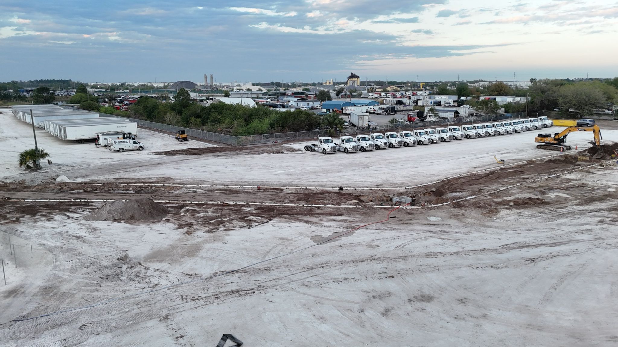 Our team led a comprehensive sitework package for this industrial lot expansion, including full demolition, drainage improvements, site preparation, and access coordination. Work included milling and paving select areas, reconfiguring fencing, and installing new curbing and concrete surfaces to enhance functionality and flow across the site.