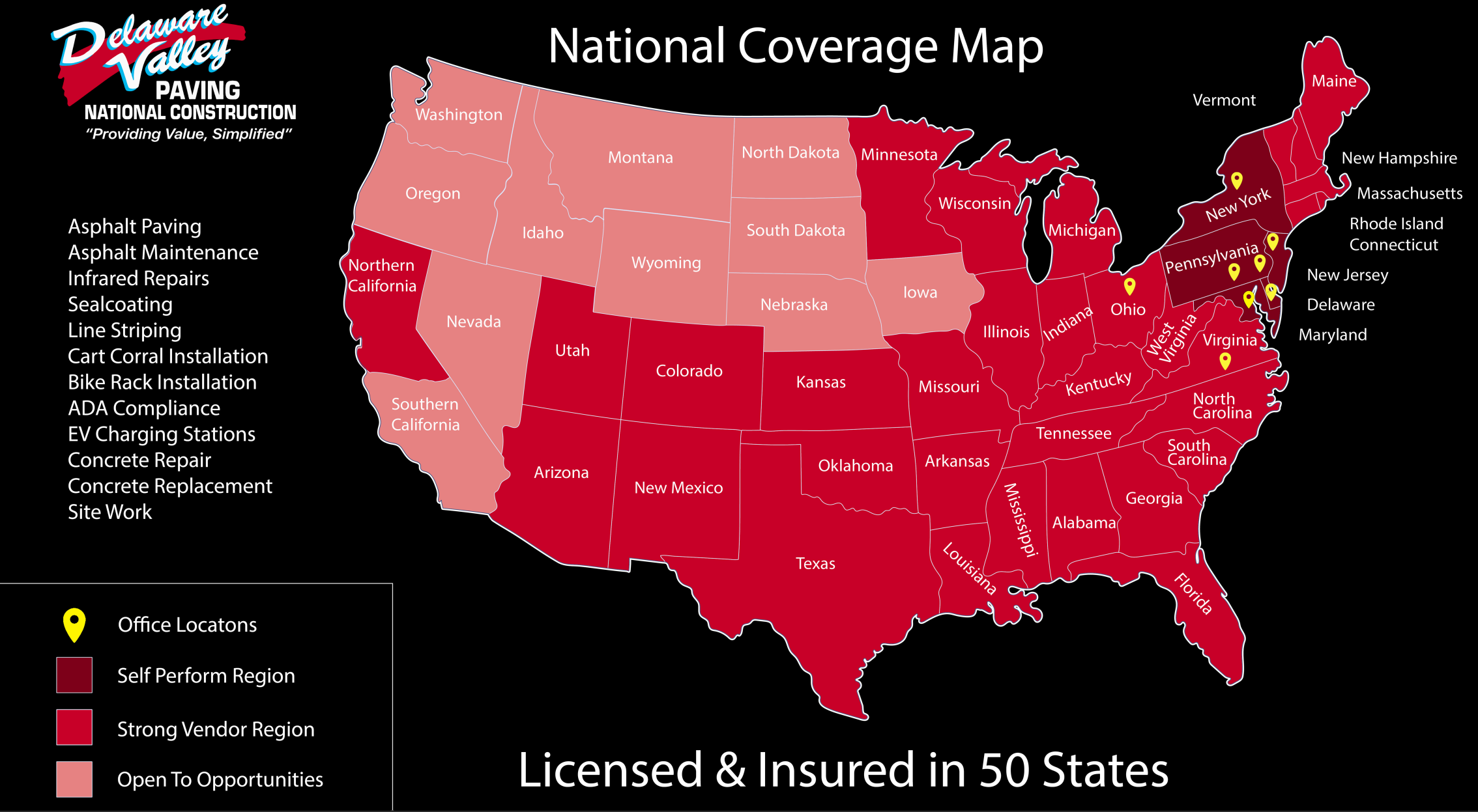 From coast to coast, Delaware Valley Paving delivers high-performance construction solutions with the consistency and reliability national clients demand. Whether it’s a single-site refresh or a multi-site rollout, we bring the expertise, equipment, and project management needed to get the job done—on time and on budget.