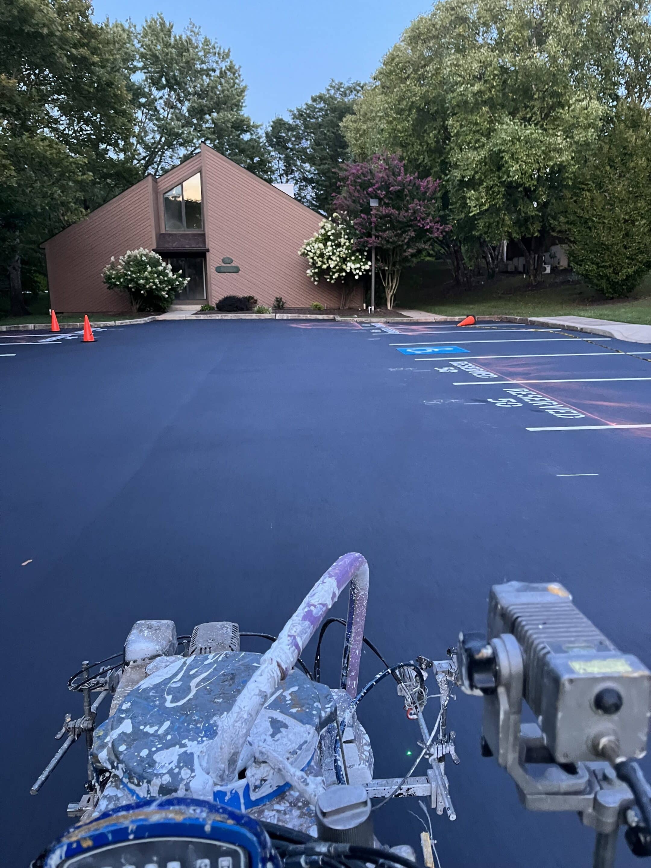 The Delaware Valley Paving Crew providing a community with a fresh seal coating and line striping job to extend the life of their asphalt.